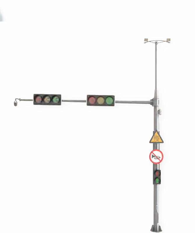 A közlekedési lámpák egyfajta forgalmi jelző létesítmény. Az integrált jel fényoszlop kombinálhatja a közlekedési táblákat és a jellámpákat, és egy pólus több célra is felhasználható. A jelzőfényeket széles körben használják a forgalmi rendszerekben. Különböző hosszúságokban és specifikációkban feldolgozhatók a tényleges igények szerint. A pólustest kiváló minőségű acélból készül, és a korrózióellenes kezelés magában foglalja a forró dip-horgaizáló, forró permetező műanyag, a forró permetező alumínium és más módszereket.